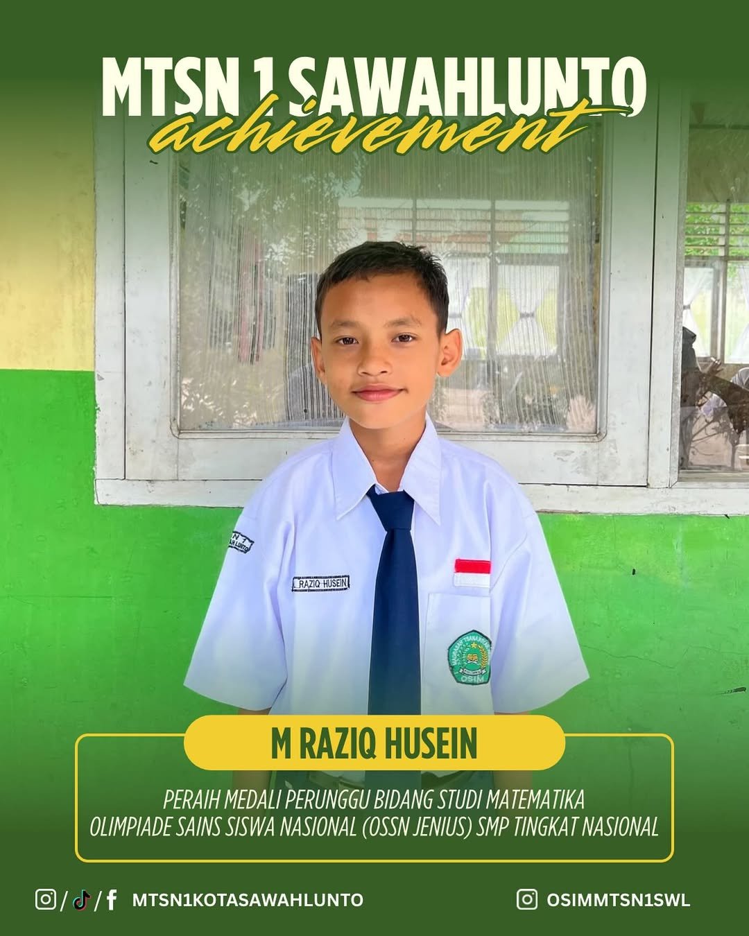 MTsN 1 Sawahlunto Cetak Bintang Matematika Nasional: M. Raziq Husein Sabet Perunggu di OSSN Jenius Setelah Sebelumnya Raih Perak Provinsi!